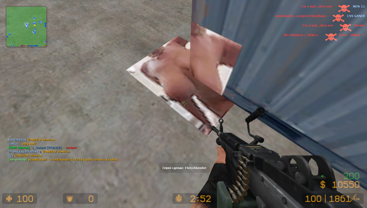 Name Fleischbender SteamID U:1:19875267 Server [CS:S] Zombie Hunting V3 Time and Date 18:34 (UTC+2), 15.01.2026 Report Reason Severely bad Spraylogos Additional Information Proof Screenshot